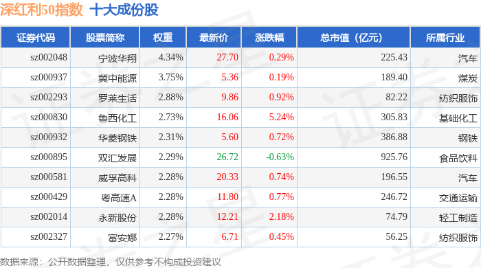 深红利50(399672)指数十大成份股详情如下: