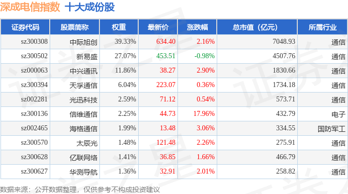 深成电信(399688)指数十大成份股详情如下: