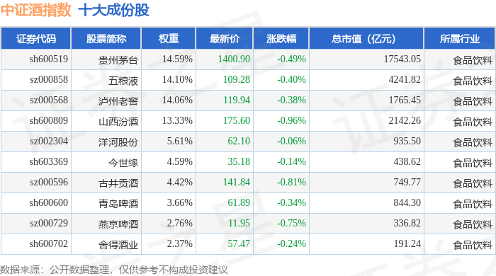 近10日内中证酒(399987)指数成份股做了调整,剔除了1只股票。