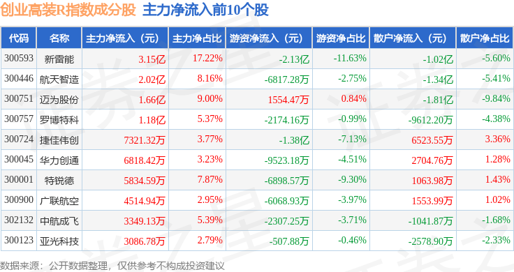 资金流向方面,创业高装R(470040)指数成份股当日主力资金净流入合计7.91亿元,游资资金净流出合计8.73亿元,散户资金净流入合计8172.07万元。成份股资金流向详情见下表: