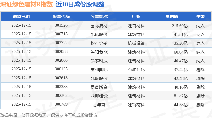 近10日内深证绿色建材R(470077)指数成份股做了调整,新纳入了5只股票,剔除了5只股票。