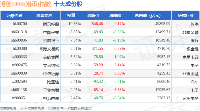 湾创100R(港币)(480002)指数十大成份股详情如下: