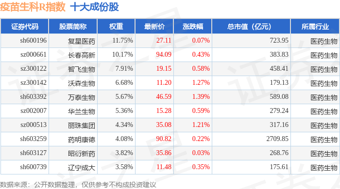 近10日内疫苗生科R(480015)指数成份股做了调整,新纳入了2只股票,剔除了2只股票。