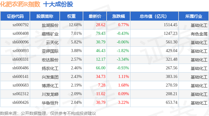 近10日内化肥农药R(480035)指数成份股做了调整,新纳入了4只股票,剔除了20只股票。