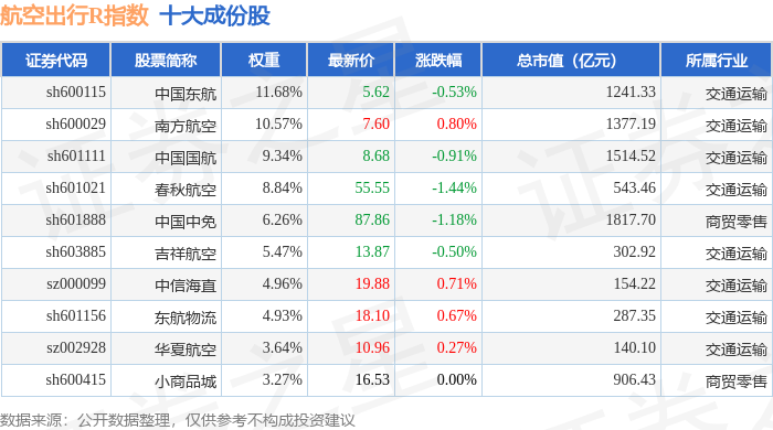 近10日内航空出行R(480059)指数成份股做了调整,新纳入了4只股票,剔除了4只股票。