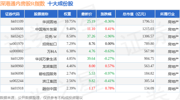 近10日内深港通内房股R(483083)指数成份股做了调整,剔除了2只股票。