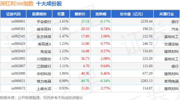证券之星消息,12月24日,深红利300(970062)指数报收于5594.07点,涨0.66%,成交1743.13亿元,换手率1.45%。当日该指数成份股中,上涨的有219家,兆驰股份以10.07%的涨幅领涨,下跌的有73家,匠心家居以5.13%的跌幅领跌。