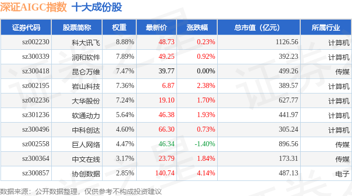 近10日内深证AIGC(970075)指数成份股做了调整,新纳入了1只股票,剔除了1只股票。