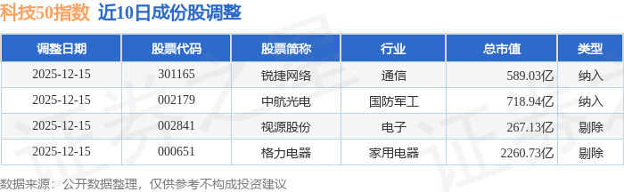 近10日内科技50(970080)指数成份股做了调整,新纳入了2只股票,剔除了2只股票。