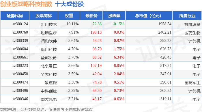 近10日内创业板战略科技(971004)指数成份股做了调整,新纳入了10只股票,剔除了10只股票。