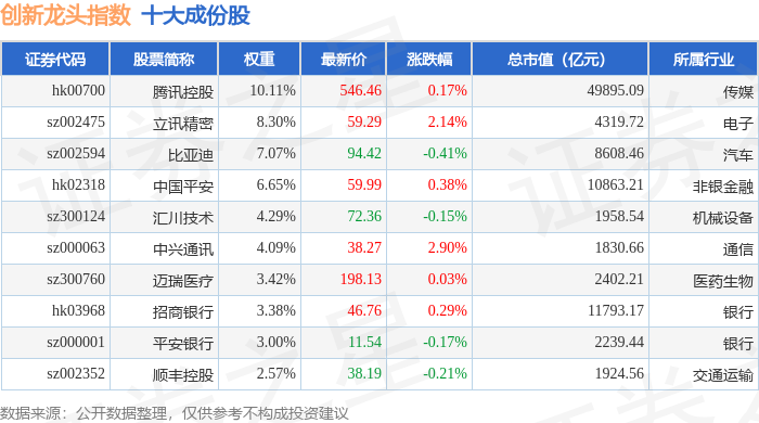 创新龙头(980036)指数十大成份股详情如下: