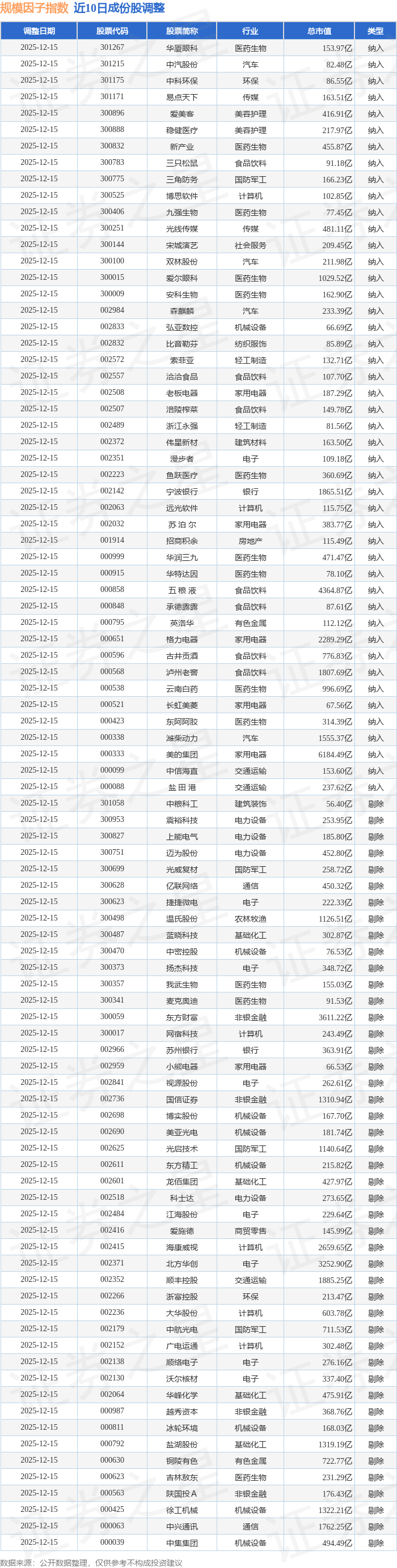 近10日内规模因子(980055)指数成份股做了调整,新纳入了46只股票,剔除了46只股票。