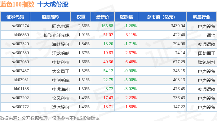 近10日内蓝色100(980068)指数成份股做了调整,新纳入了9只股票,剔除了2只股票。