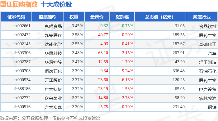 近10日内国证回购(980063)指数成份股做了调整,新纳入了22只股票,剔除了22只股票。