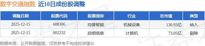 近10日内数字交通(980075)指数成份股做了调整,新纳入了1只股票,剔除了1只股票。