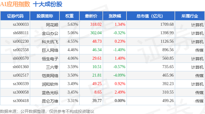近10日内AI应用(980112)指数成份股做了调整,新纳入了3只股票,剔除了3只股票。