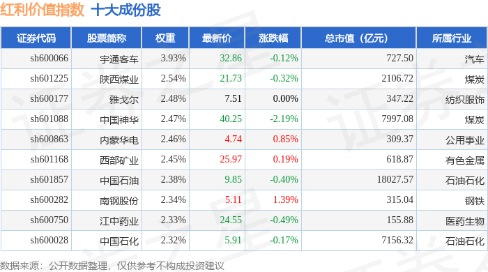 证券之星消息,12月24日,红利价值(980103)指数报收于3207.17点,涨0.0%,成交244.94亿元,换手率0.3%。当日该指数成份股中,上涨的有23家,亿联网络以1.66%的涨幅领涨,下跌的有24家,中国神华以2.19%的跌幅领跌。