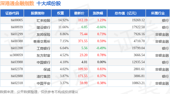 证券之星消息,12月24日,深港通金融(983025)指数报收于7441.49点,涨0.22%,成交248.2亿元,换手率0.23%。当日该指数成份股中,上涨的有59家,瑞达期货以10.02%的涨幅领涨,下跌的有31家,中银航空租赁以1.56%的跌幅领跌。