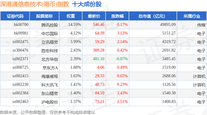 深港通信息技术(港币)(983028)指数十大成份股详情如下: