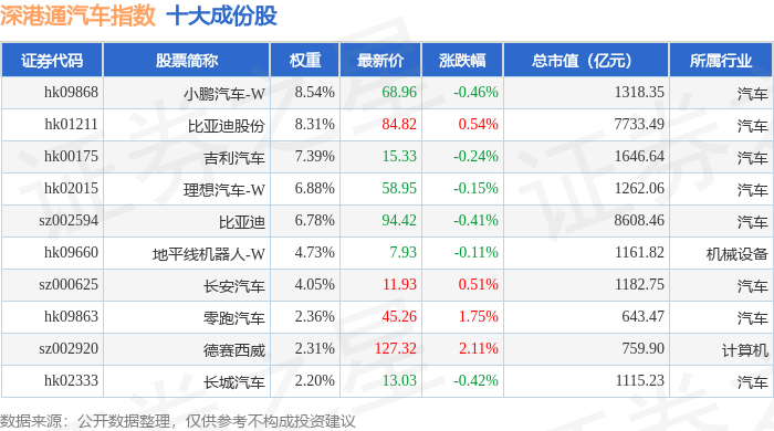 近10日内深港通汽车(983039)指数成份股做了调整,新纳入了16只股票。