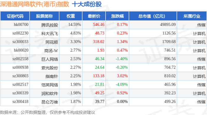 深港通网络软件(港币)(983048)指数十大成份股详情如下: