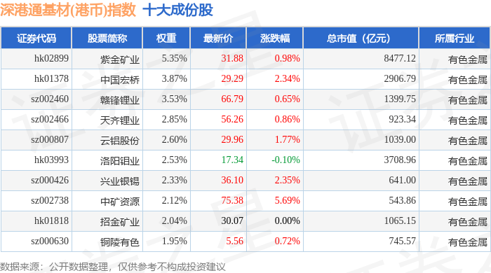 深港通基材(港币)(983062)指数十大成份股详情如下: