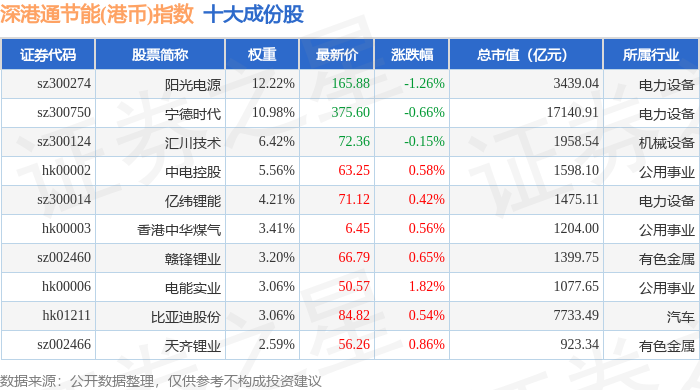 深港通节能(港币)(983086)指数十大成份股详情如下: