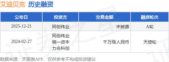 证券之星消息,根据天眼查APP于12月21日公布的信息整理,深圳市艾迪贝克生物医药有限公司A轮融资,融资额未披露,参与投资的机构包括同创伟业。