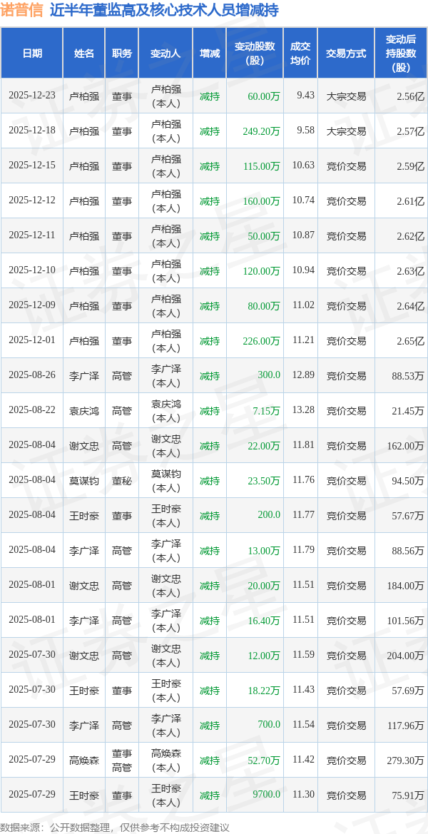 诺普信近半年内的董监高及核心技术人员增减持详情如下: