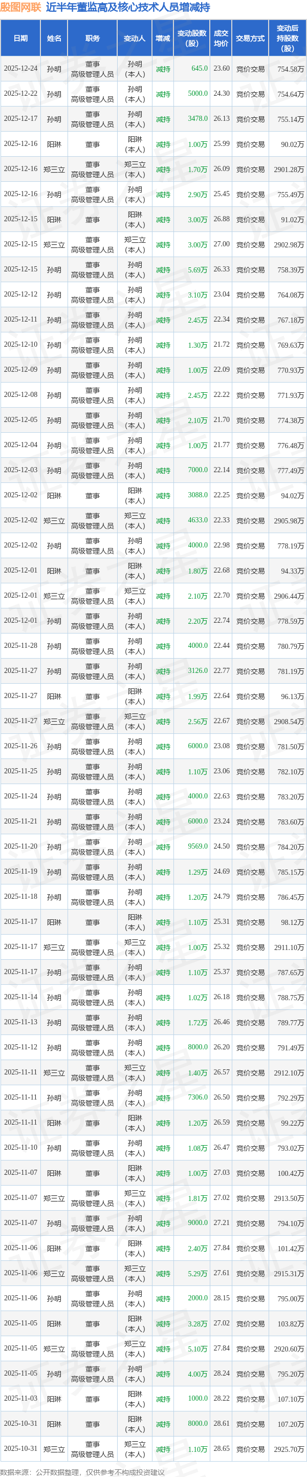 殷图网联近半年内的董监高及核心技术人员增减持详情如下: