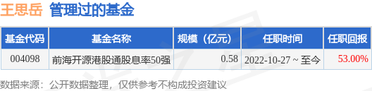 王思岳先生:中国,硕士研究生。2016年4月至2016年12月任景顺长城基金管理有限公司风险控制助理;2016年12月至2018年5月任景顺长城基金管理有限公司稽核助理。2018年5月加盟前海开源基金管理有限公司,曾任投资部研究员,现任投资部基金经理。2022年10月27日任前海开源港股通股息率50强股票型证券投资基金基金经理。