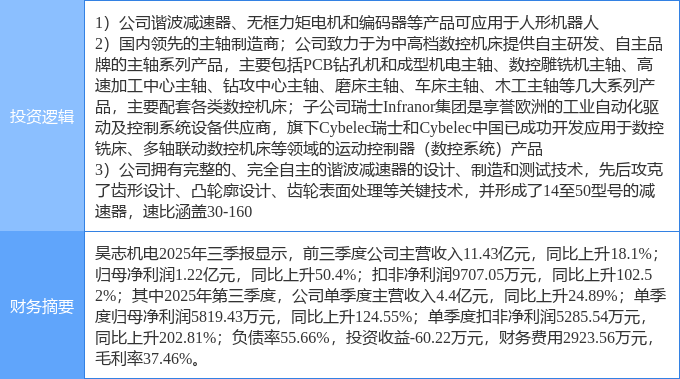 该股为减速器,人形机器人,工业母机概念热股,当日减速器概念上涨3.29%,人形机器人概念上涨3.2%,工业母机概念上涨2.6%。