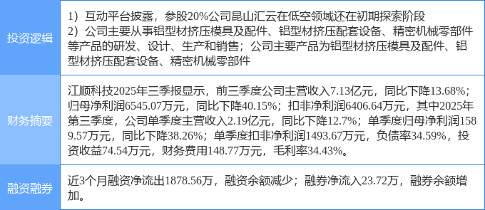 证券之星消息,江顺科技12月25日涨停收盘,收盘价74.56元。该股于10点52分涨停,1次打开涨停,截止收盘封单资金为1570.23万元,占其流通市值1.4%。