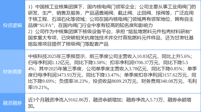 该股为军工集团,军工,钍基熔盐堆概念热股,当日军工集团概念上涨2.87%,军工概念上涨2.36%,钍基熔盐堆概念上涨1.83%。