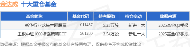根据2025基金Q3季报公募基金重仓股数据,重仓该股的公募基金共2家,其中持有数量最多的公募基金为新华基金的新华行业龙头主题股票。新华行业龙头主题股票目前规模为0.55亿元,最新净值0.6775(12月24日),较上一交易日上涨1.15%,近一年上涨10.54%。该公募基金现任基金经理为张大江 林翟。林翟在任的基金产品包括:新华积极价值灵活配置混合A,管理时间为2025年6月12日至今,期间收益率为17.74%;新华双利债券A,管理时间为2025年7月23日至今,期间收益率为1.37%;张大江在任的基金产品包括:新华行业周期轮换混合A,管理时间为2023年1月9日至今,期间收益率为39.63%;新华行业灵活配置混合A,管理时间为2024年4月12日至今,期间收益率为-5.85%;新华鑫益灵活配置混合A,管理时间为2024年11月13日至今,期间收益率为1.5%;