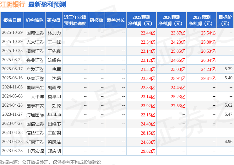 证券之星消息,2025年12月25日江阴银行(002807)发布公告称国信证券王剑、富国基金徐健荣于2025年12月24日调研我司。