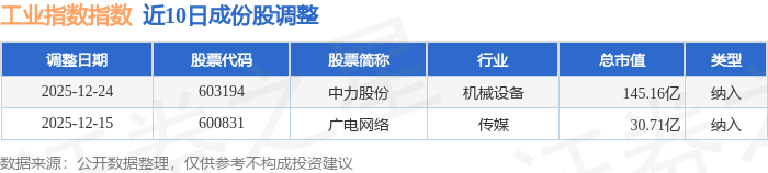 近10日内工业指数(000004)成份股做了调整,新纳入了2只股票。