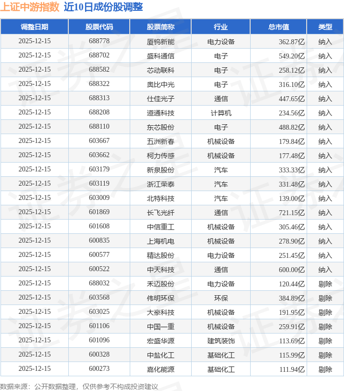 近10日内上证中游(000095)指数成份股做了调整,新纳入了17只股票,剔除了7只股票。