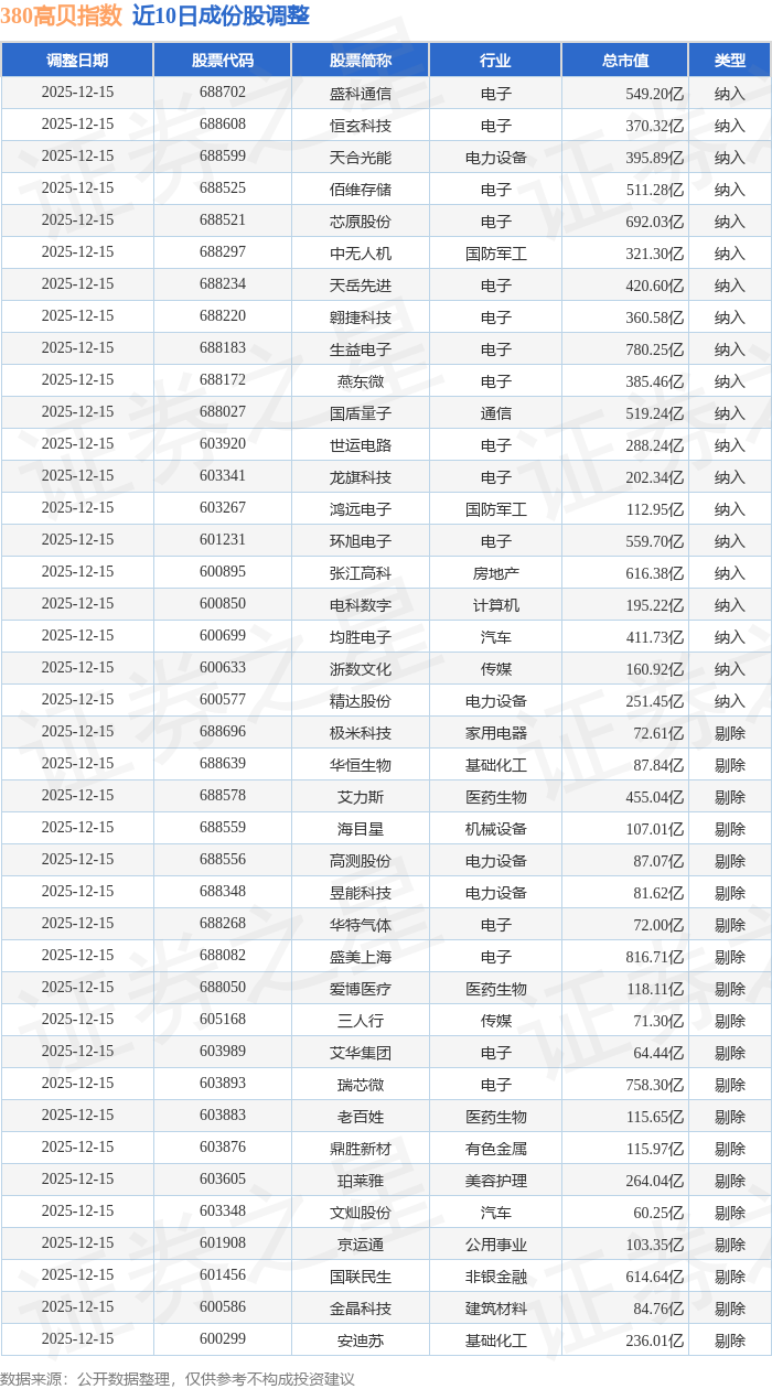 近10日内380高贝(000137)指数成份股做了调整,新纳入了20只股票,剔除了20只股票。
