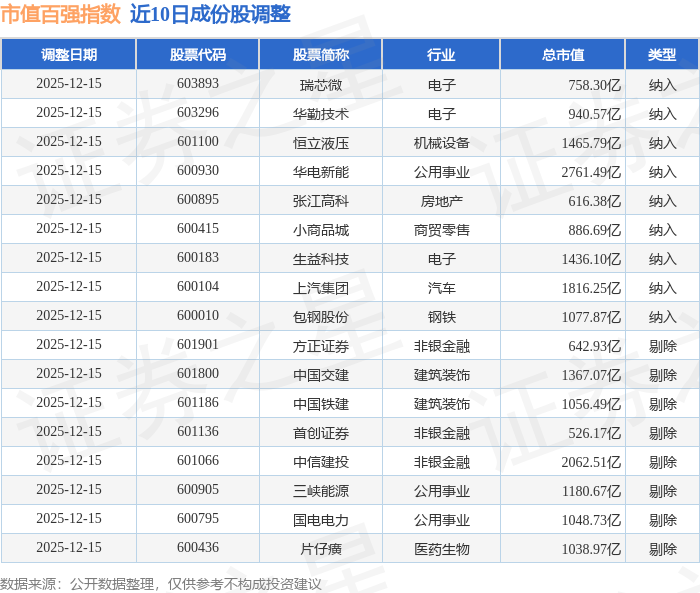近10日内市值百强(000155)指数成份股做了调整,新纳入了9只股票,剔除了8只股票。