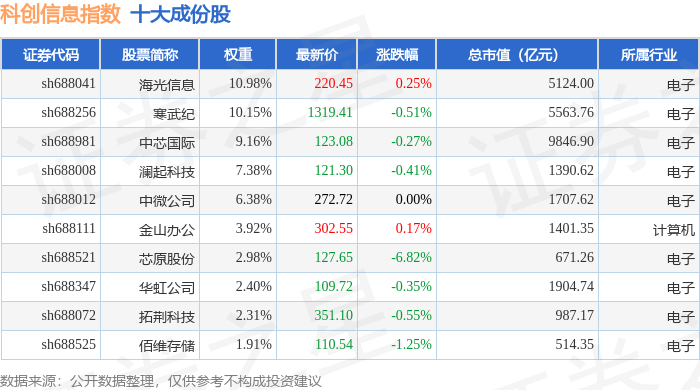 科创信息(000682)指数十大成份股详情如下: