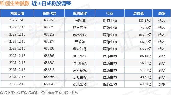 近10日内科创生物(000683)指数成份股做了调整,新纳入了5只股票,剔除了5只股票。