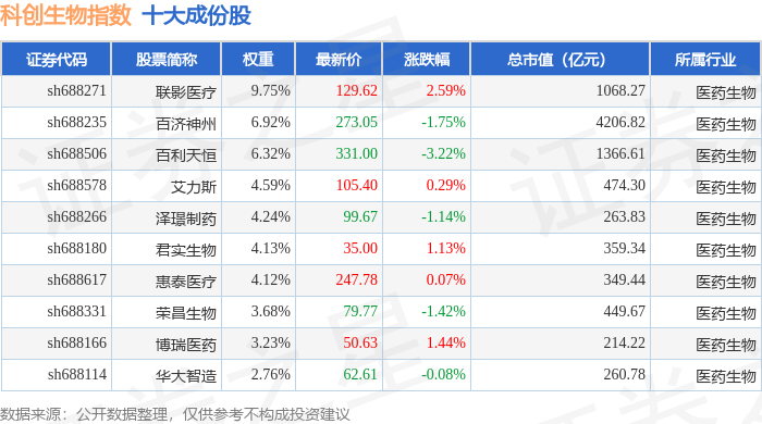 科创生物(000683)指数十大成份股详情如下: