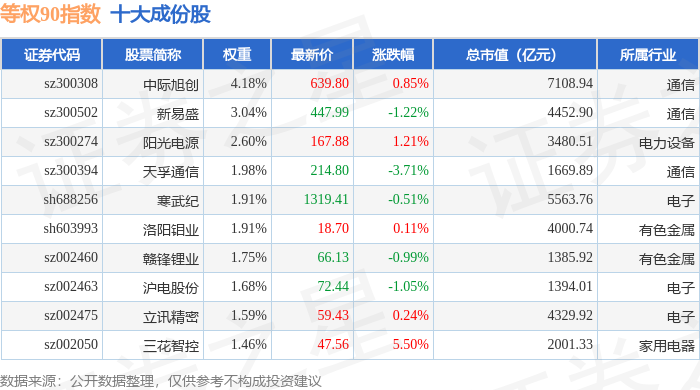 证券之星消息,12月25日,等权90(000971)指数报收于3365.11点,涨0.19%,成交2201.39亿元,换手率0.27%。当日该指数成份股中,上涨的有48家,三花智控以5.5%的涨幅领涨,下跌的有37家,天孚通信以3.71%的跌幅领跌。