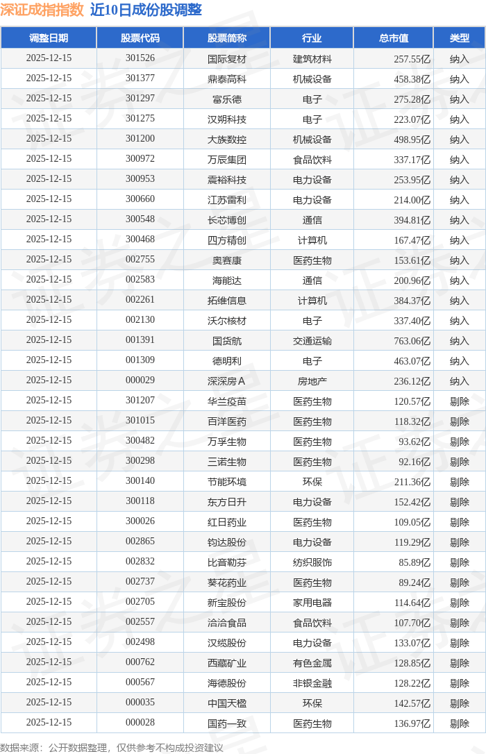 近10日内深证成指(399001)指数成份股做了调整,新纳入了17只股票,剔除了17只股票。