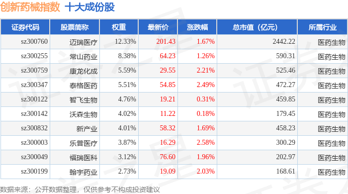 证券之星消息,12月25日,创新药械(399265)指数报收于1057.71点,涨1.17%,成交103.17亿元,换手率1.47%。当日该指数成份股中,上涨的有39家,易瑞生物以3.66%的涨幅领涨,下跌的有9家,金石亚药以1.11%的跌幅领跌。