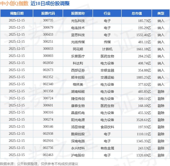 近10日内中小创Q(399294)指数成份股做了调整,新纳入了10只股票,剔除了10只股票。