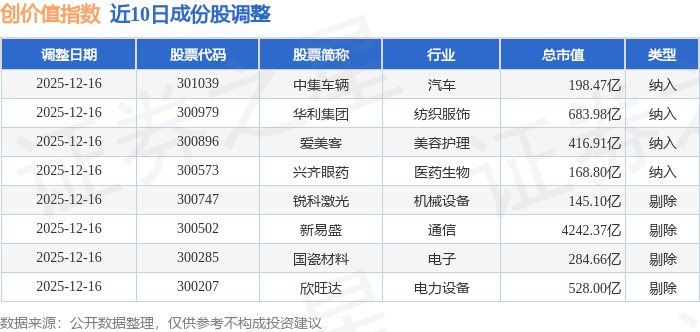 近10日内创价值(399295)指数成份股做了调整,新纳入了4只股票,剔除了4只股票。