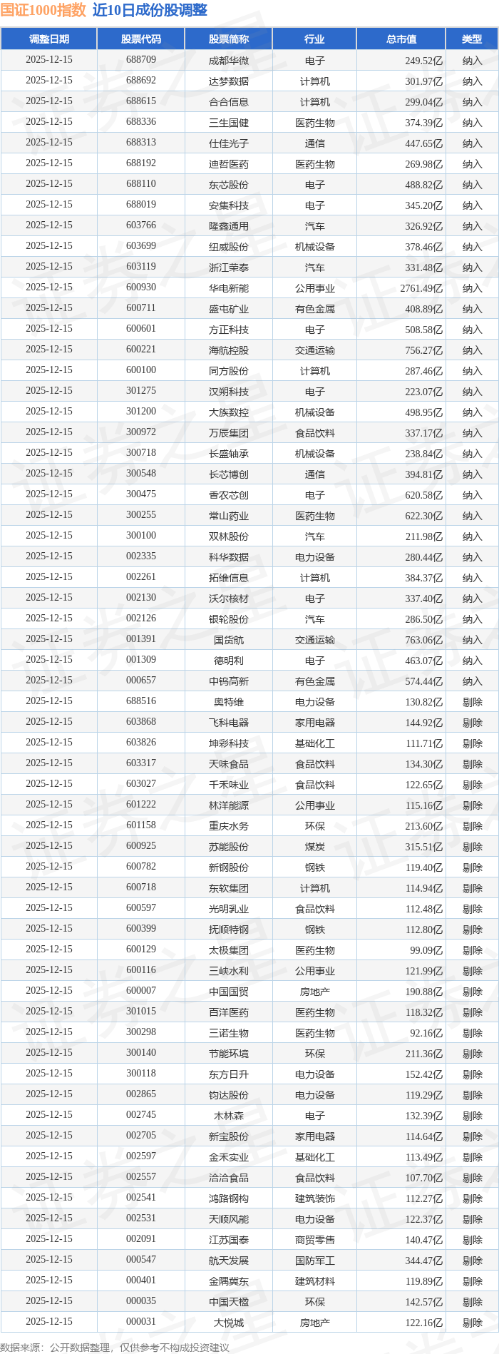 近10日内国证1000(399311)指数成份股做了调整,新纳入了31只股票,剔除了31只股票。
