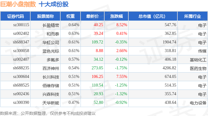 证券之星消息,12月25日,巨潮小盘(399316)指数报收于5948.26点,涨0.93%,成交2950.08亿元,换手率1.68%。当日该指数成份股中,上涨的有320家,复旦微电以16.21%的涨幅领涨,下跌的有155家,海峡股份以5.23%的跌幅领跌。
